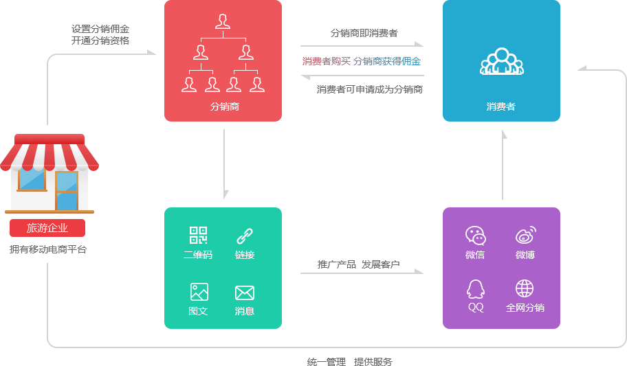 用戶通過多種分銷渠道,將產(chǎn)品分享、推廣給熟人和好友,賺取相應傭金,同時分銷商可通過分銷商店鋪功能,實現(xiàn)全站分銷